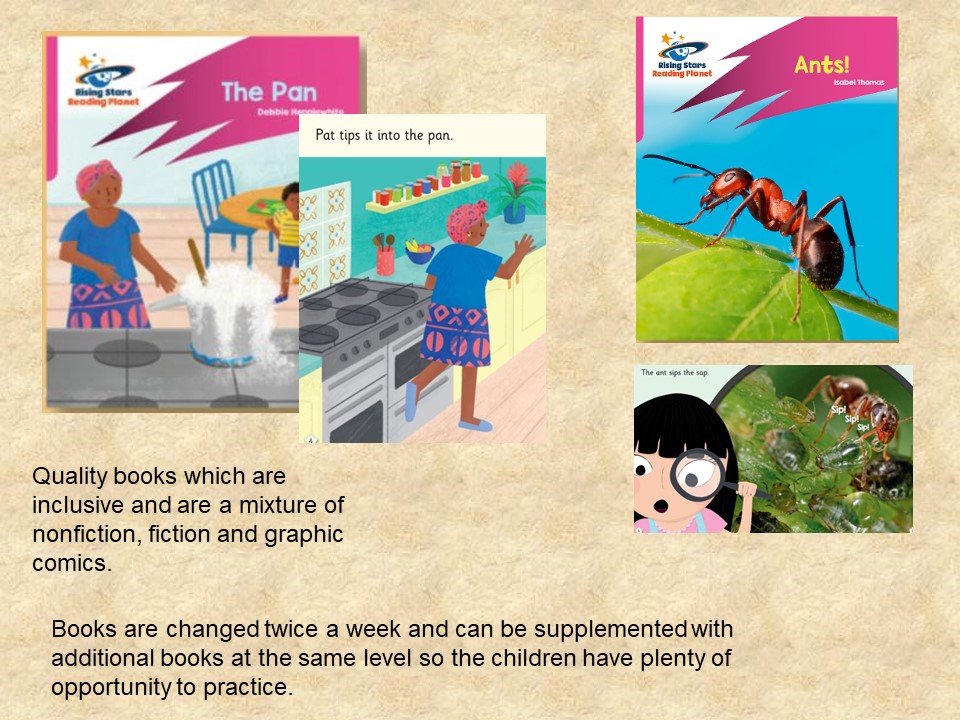 - All staff are supported with regular phonics professional development training.