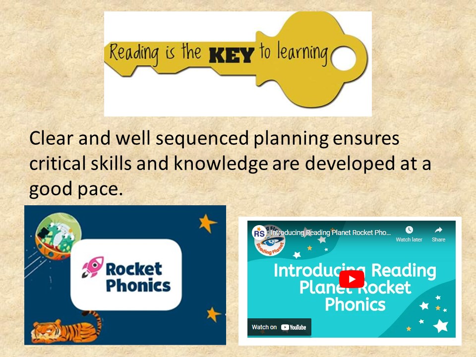 Rocket Phonics is a systematic synthetic phonics programme that has been written by phonics experts. It includes a combination of digital and printed resources, and two fully matched series of decodable reading books. The reading books we use have been carefully designed to appeal to the tastes and interests of children who are starting out on their reading journey. They include a variety of fiction and non-fiction, and have been carefully devised to provide practice and application of phonics knowledge and skills in full alignment with the classroom lessons.