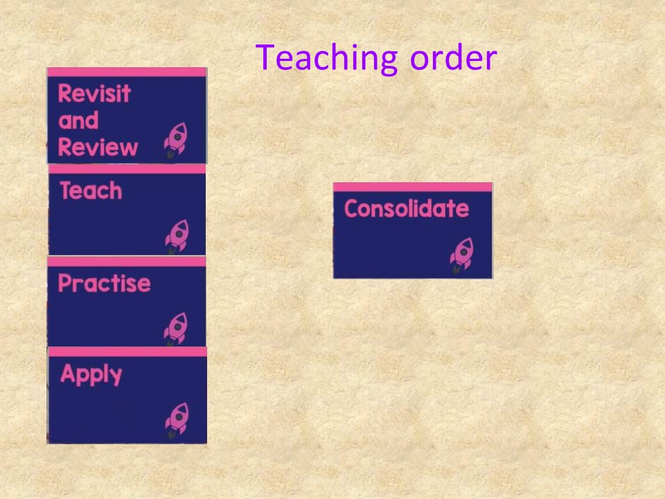 - The Teaching & Learning Cycle (revisit and review, teach, practise, apply) is followed.